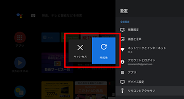 画面に再起動メニューが表示されたら「電源」ボタンから指を離し、[再起動]を選び「決定」ボタンを押します。