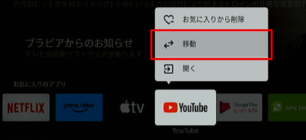 リモコンの◀▶ボタンで、アプリを好きな場所へ移動し、「決定」ボタンを押します。