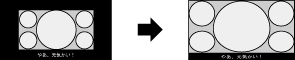映像を水平方向に拡大して画面いっぱいに表示します。