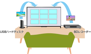 テレビの番組表を使って、HDMIケーブルやUSBケーブルでつないだ機器に番組を予約できます。