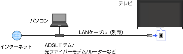 LANケーブル(別売)を使って、インターネットやホームネットワークにつなげます。