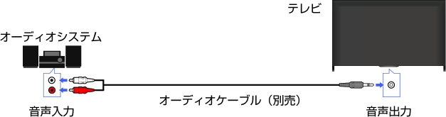 音声入力端子のあるオーディオシステムやホームシアタースタンドをオーディオケーブルでつなぎます。