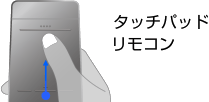 (タッチパッドリモコンでは、タッチパッドで指を左右にスライドさせてお好みの項目にフォーカスを合わせ、タッチパッドを押し込んで選ぶ。)