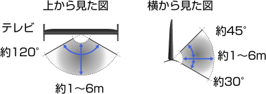 - 推奨する視聴角度と距離は、部屋の環境やテレビの設置状況によって異なります。