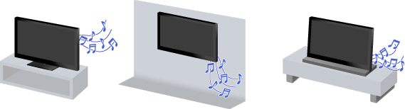 - テレビを壁に掛けたり、フロアスタンドを使用したときに最適な音質にします。