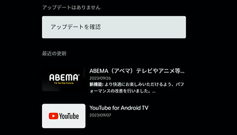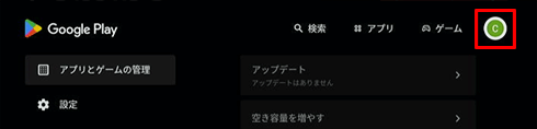 [アプリとゲームの管理]を選び、リモコンの→ボタンで[アップデート]を選択すると、インストールしたアプリのアップデートを確認できます。