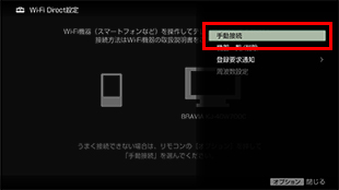 リモコンの「オプション」ボタンを押し、[手動接続] - [その他] を選び、「決定」ボタンを押します。