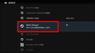 ブラビアのWi-Fi Directモードを有効にする。