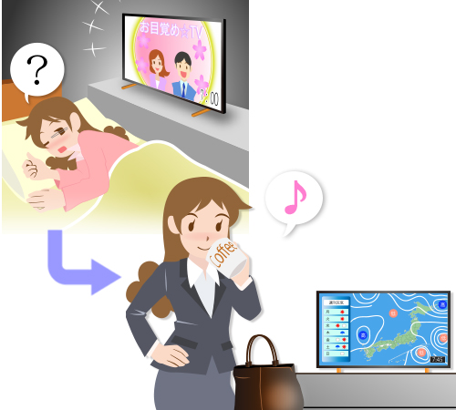 - 「出勤前は、お気に入りの◯◯テレビを見るのが定番。でも、寝る前のチャンネルから朝一変更するのって面倒だな…」
