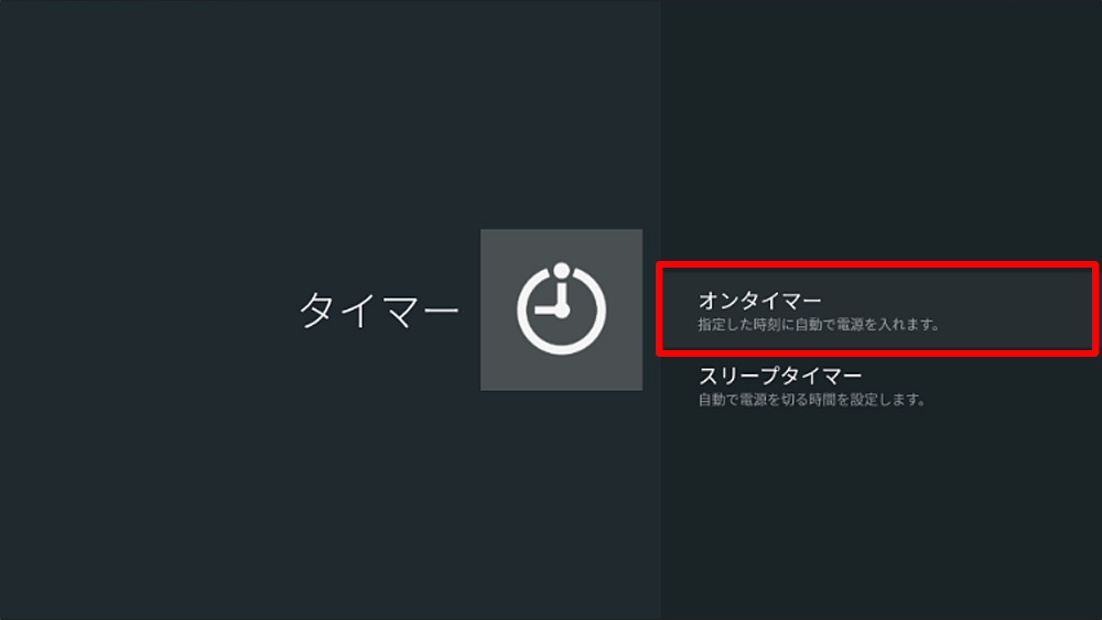 Android TV™ / Google TV™ 機能搭載ブラビアのシリーズ名/機種名/発売年が知りたい- リモコンの「クイック設定」ボタンを押して、[オンタイマー]を選び、「決定」ボタンを押します。