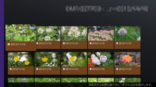 リモコンの矢印ボタンで表示したい画像を選び、「決定」ボタンを押すと再生されます。