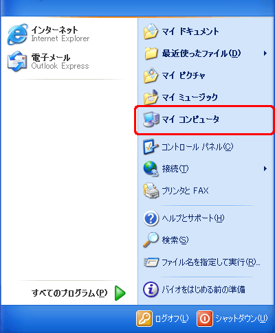 - [スタート] メニュー内の [マイ コンピュータ] をクリックします。