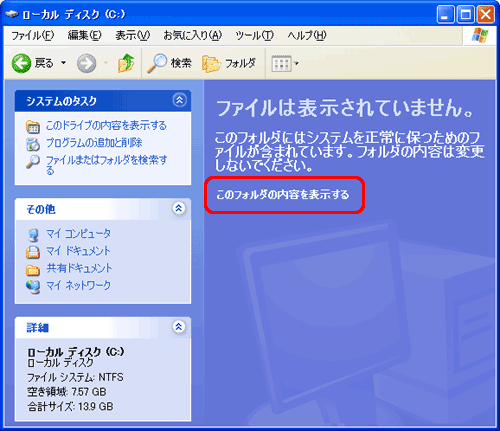 - 以下の画面が表示された場合は、"このフォルダの内容を表示する"をクリックしてください。表示されない場合は、そのまま手順を進めてください。
