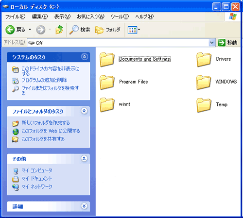 - [ローカル ディスク(C:)] をダブルクリックすると、以下のウィンドウに切り替わります。表示されるフォルダ数はお客様の環境によって異なります。