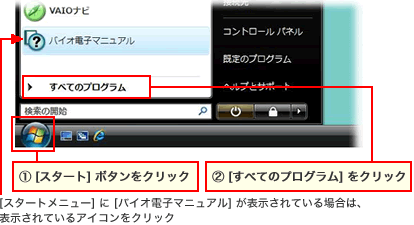 2004年5月以降に発売されたVAIOには、[電子マニュアル]が搭載されています。