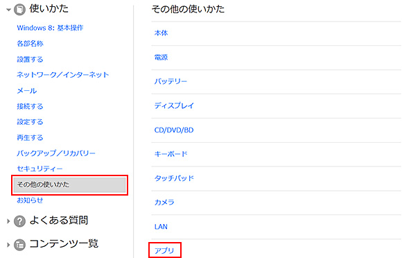 [その他の使いかた]-[アプリ]を選択します。