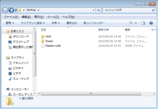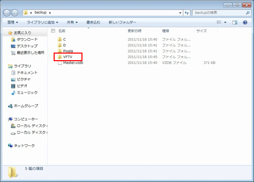 - コピーしたデータがフォルダーに保存されます。[Master.vzdb]がコピーされたことを確認します。