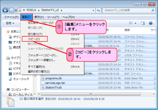 手順7 [StationTV_LE]または[DTVApp]フォルダー内のファイルをバックアップします