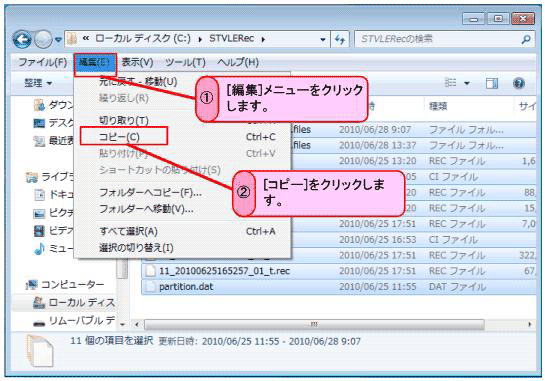 手順8 [STVLERec]または[DTVApp]フォルダー内のファイルをバックアップします