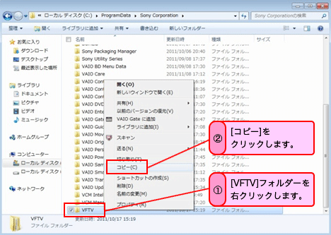- [VFTV]フォルダーを右クリックし、[コピー]をクリックします。