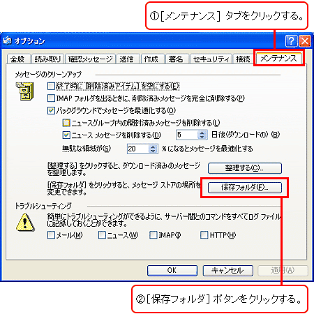- * Outlook Express Ver.5.* の場合も同様の操作でバックアップが可能です。