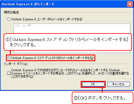 「バックアップ方法」の手順でバックアップした Outlook Express Ver.6.0の「送受信したメール」を復元する方法を紹介します。