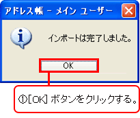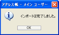 - 下記のダイアログ ボックスが表示されたら、インポートは完了です。