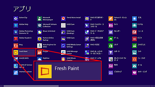 - 「アプリ」画面が表示されるので、[Fresh Paint]を選択します。