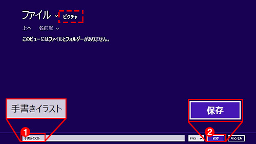 今回は「ピクチャ」フォルダー内に「手書きイラスト」という名前で保存します。