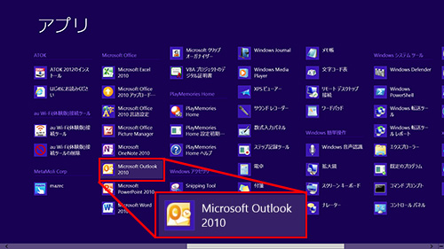 - 「アプリ」画面が表示されるので、[Microsoft Outlook]を選択します。