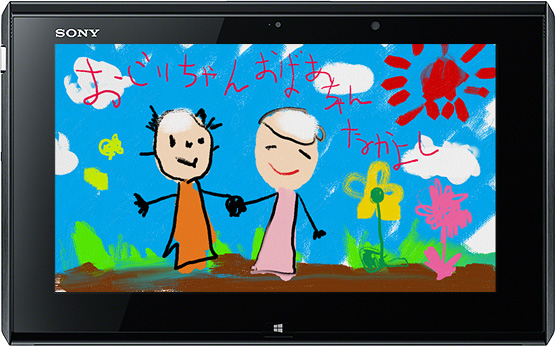 例えば、「遠く離れた両親に自分の子どもが描いた絵を見せたい」という場合にも、VAIO Duoの手書き機能を活用できます。