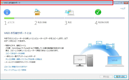 - 「VAIO お引越しサポートとは」と表示されるので、赤枠の部分にカーソルを移動し、マウスの右ボタンをクリックします。