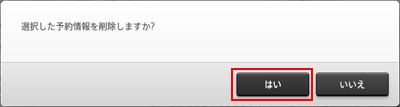 - 「選択した予約情報を削除しますか?」というメッセージが表示されたら、[はい]をクリックします。