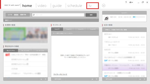 - VAIO TV with nasne™を起動して、[tv]をクリックします。