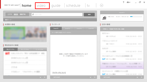 - VAIO TV with nasne™を起動して、[video]をクリックします。