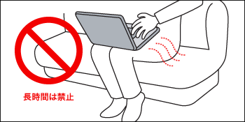 ノートパソコンをひざの上で長時間使用すると、排気口や吸気口を塞いで熱がこもってしまい、衣類の上からでも低温やけどになる可能性があります。