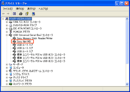 SonicStage が起動しているときは一旦終了してください。Net MD ベイユニットが装着されていないときは、エンターテインメントベイに装着を行ってください。(ポップアップチルトスタンドが出ていないときにはチルトスタンドを出してください)ベイユニットをセットすると、デバイスマネージャに「Sony Net MD」と表示されます。