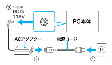 ACアダプターを取り外す前の作業方法