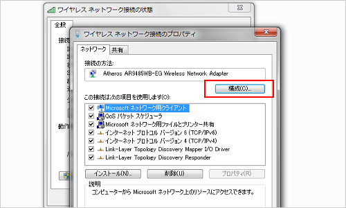 【質問】ワイヤレスネットワークアダプターの電源管理の設定を確認します。