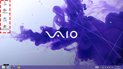 キーボードの左右どちらかの[Ctrl]キーを押しながらホイールマウスのホイールボタンを前後に動かしてアイコンの大きさを変更することもできます。
