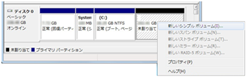 5. 未割り当て」を右クリックし、[新しいシンプル ボリューム]を選択する。