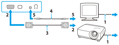 ディスプレイケーブル(別売り)を使って、VAIOに外部ディスプレイやプロジェクターなどを接続します。