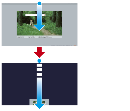 指を下に動かし、下部中央に向かってアプリの画面が消えるまでドラッグする。