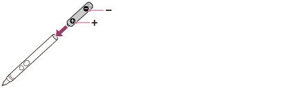 - 新しい乾電池の+と−の向きを確認し、+側をペン先に対し下方向にして入れる。