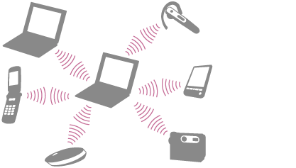 VAIOとBLUETOOTH対応のコンピューターやスマートフォン、携帯電話、ヘッドセット、マウスなどをケーブルでつなぐことなく、最長10 m離れた場所から無線通信をすることができます。