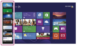 「スタート」画面上に一覧を表示させることで、起動中のアプリを確認できます。