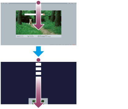 指を下に動かし、下部中央に向かってアプリの画面が消えるまでドラッグする。