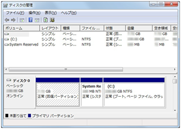「ディスクの管理」画面が表示されます。