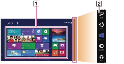チャームを表示するには、「チャームを表示する」をご覧ください。