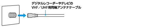 - 壁のアンテナ端子に接続されているデジタルレコーダーやテレビのVHF/UHF用同軸アンテナケーブルを取りはずす。